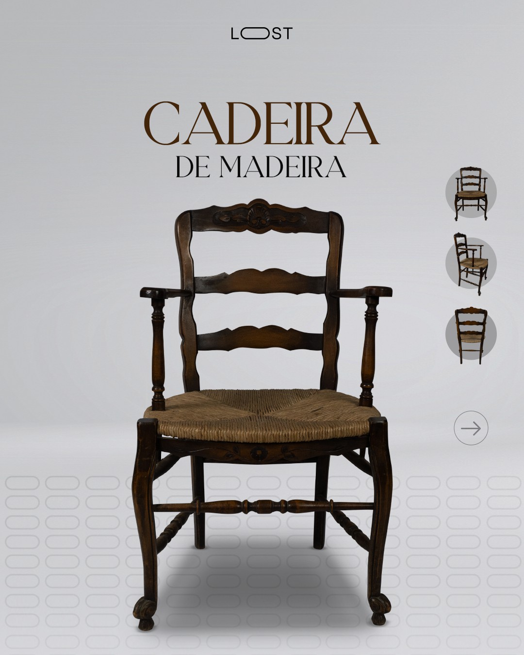 Par cadeira de madeira e palha